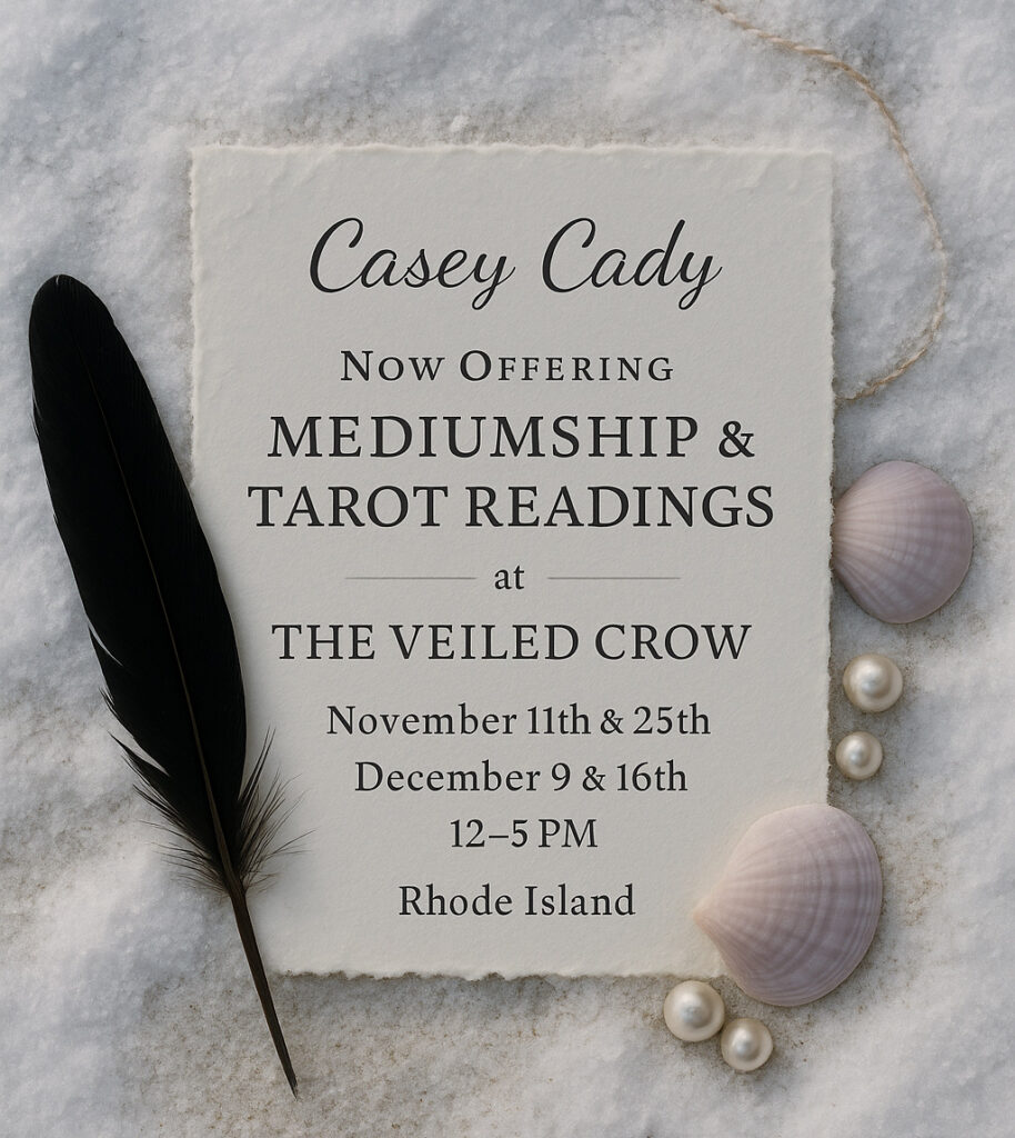 Casey offers private readings in-person in Narragansett, virtual sessions worldwide, and group gatherings for those who want to share the experience with loved ones. I’m also available for special events, workshops, and larger audiences, bringing the comfort and connection of Spirit to any setting.